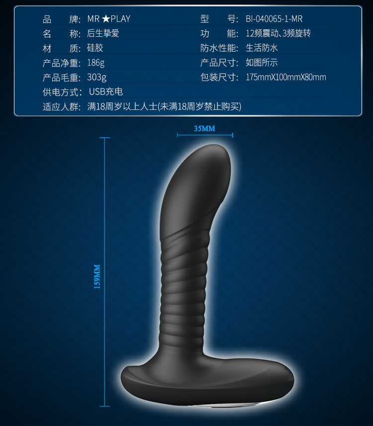 MR PLAY - Rotating Beads Vibration Prostate Massager (Chargeable - Black)