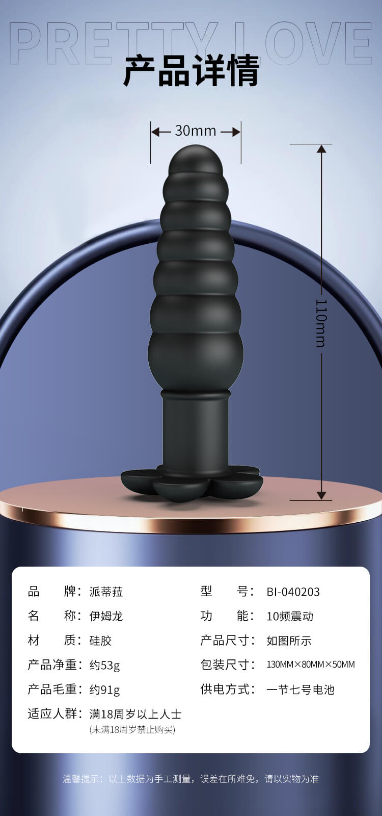 Pretty Love - Imron Vibrating Anal Plug Massager (Battery - Black)