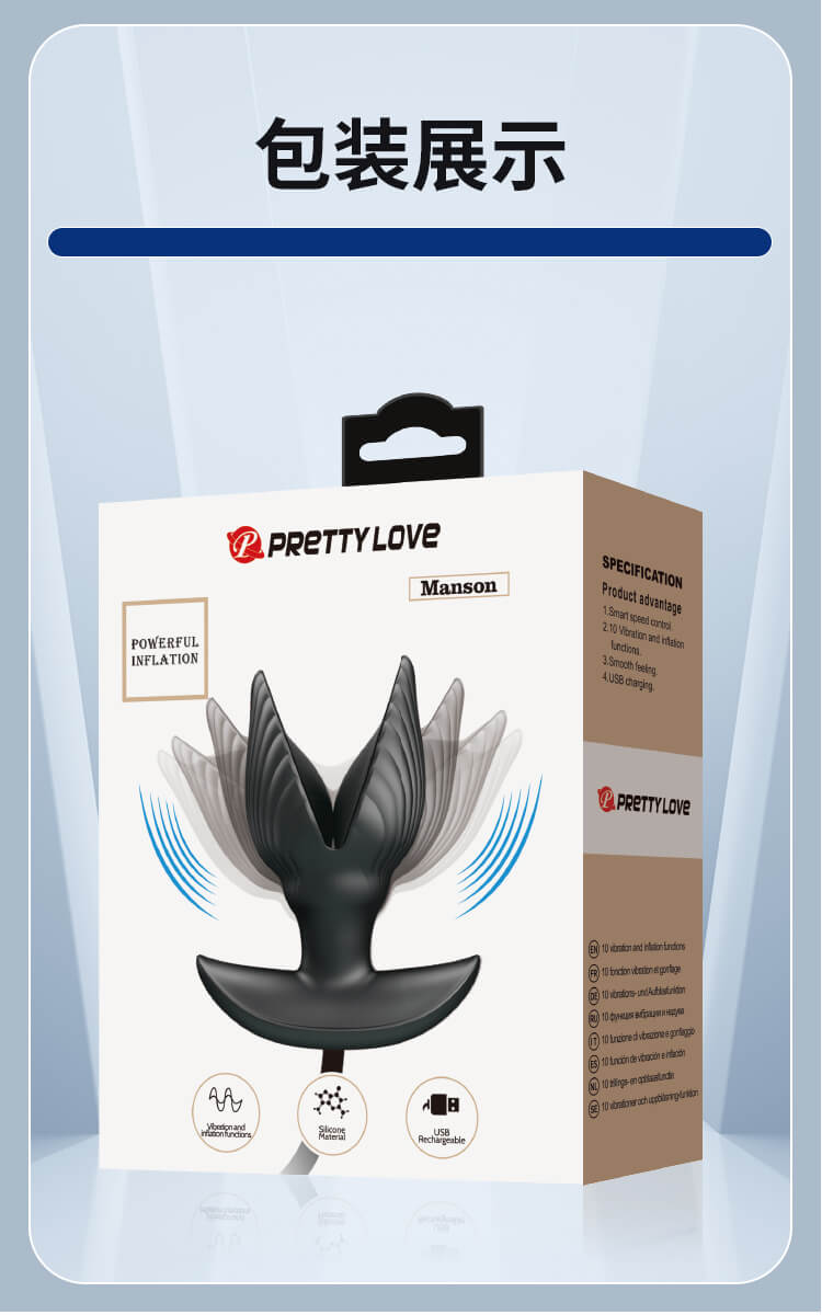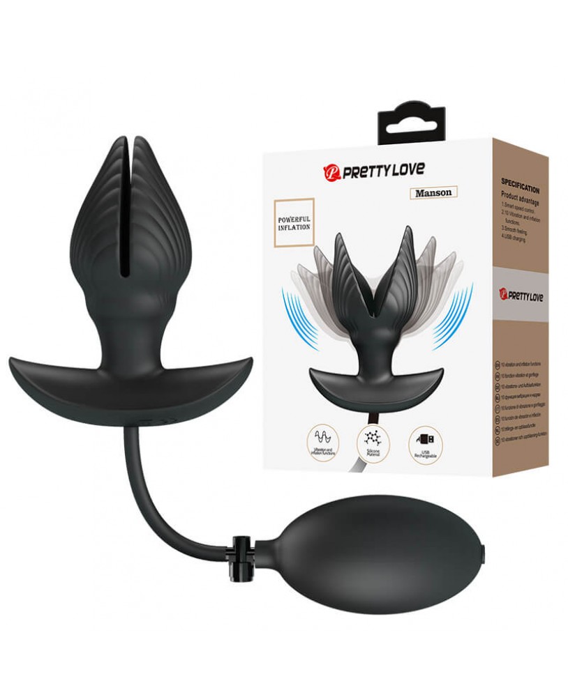 Pretty Love - Manson Inflate Anal Vibration Massager (Chargeable - Black)
