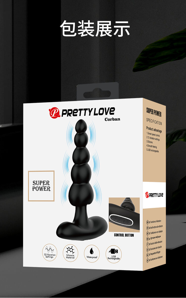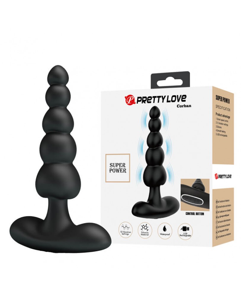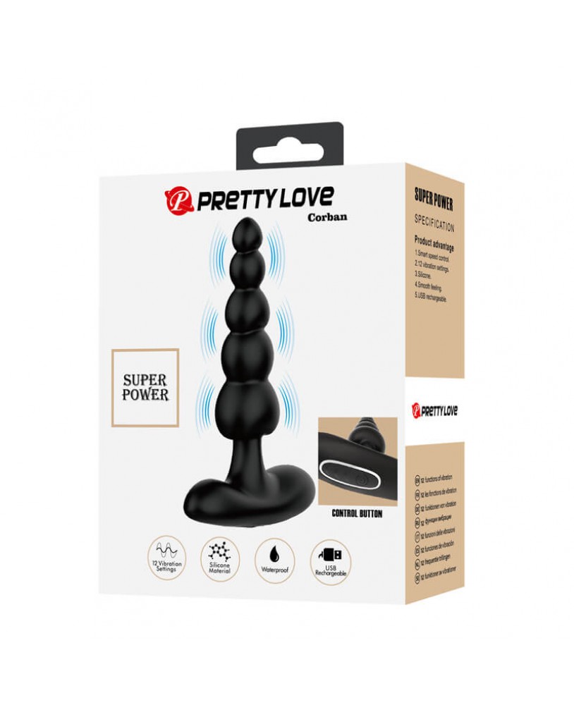 Pretty Love - Corban Vibrating Anal Bead Massager (Chargeable - Black)