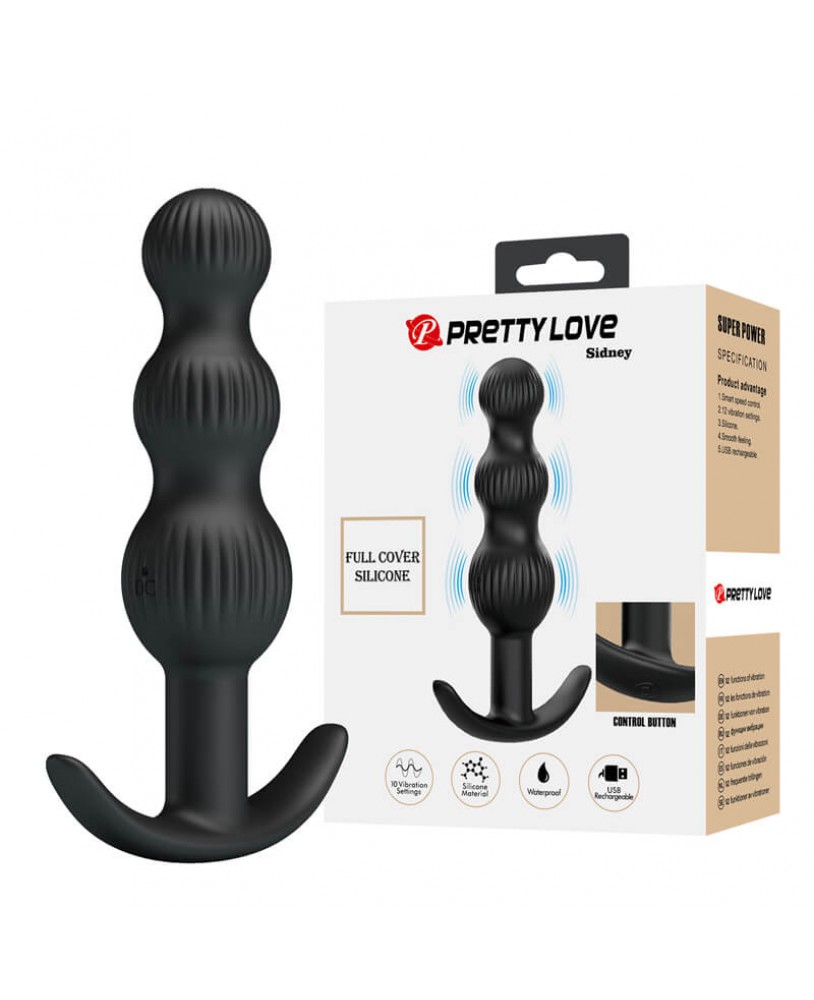 Pretty Love - Sidney Vibrating Anal Bead Massager (Chargeable - Black)