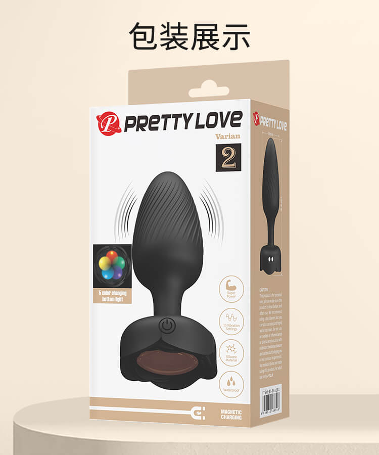 Pretty Love - Varian RGB Light Vibrating Anal Plug (Chargeable - Black)