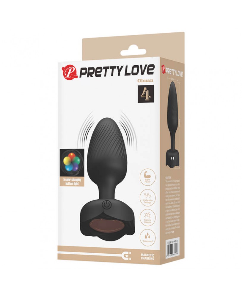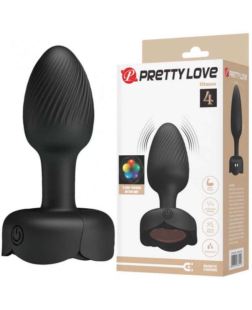 Pretty Love - Olman RGB Light Vibrating Anal Plug (Chargeable - Black)