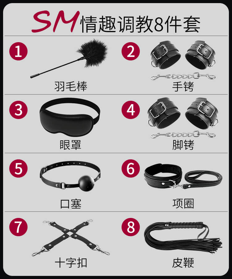 mysteriously sexy black 8-piece set is the key to unlocking the door of taboos. It is not just a set of training tools,