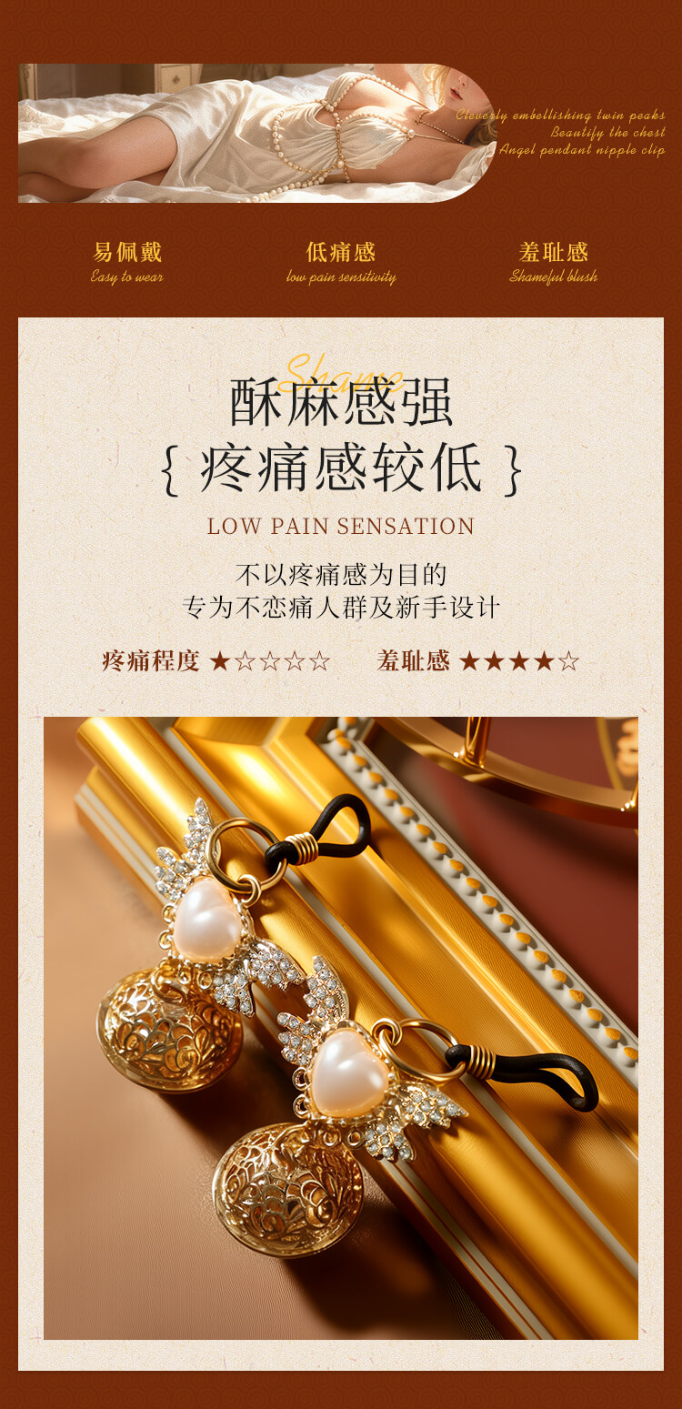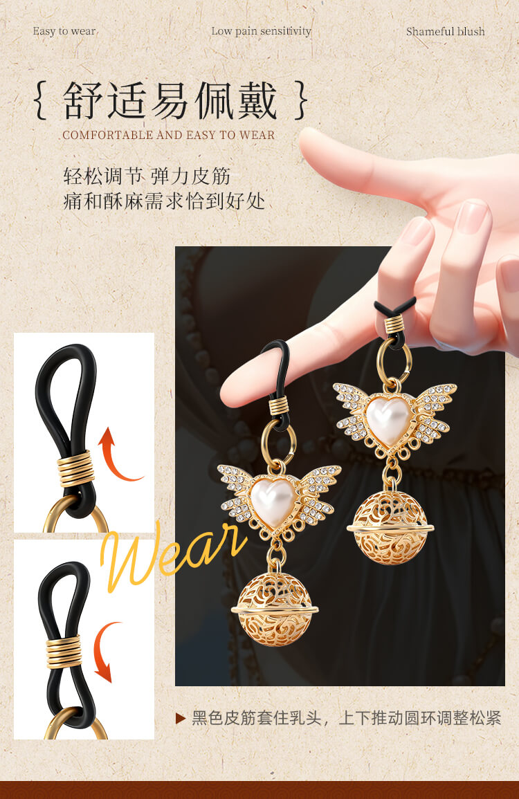 but a gentle coronation of the body. This Golden Angel Wing Nipple Clamp Pendant is born for those who understand the essence of ritual. It discards the coldness and sting of traditional intimate gear,