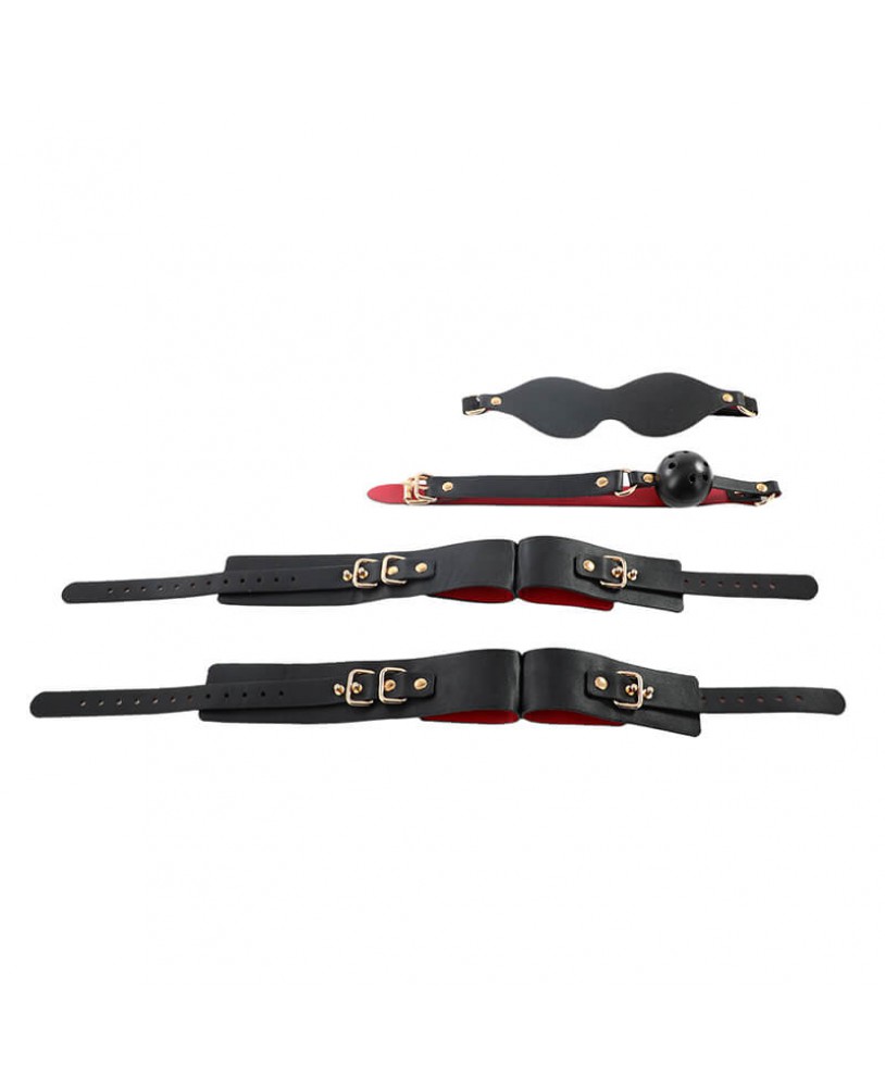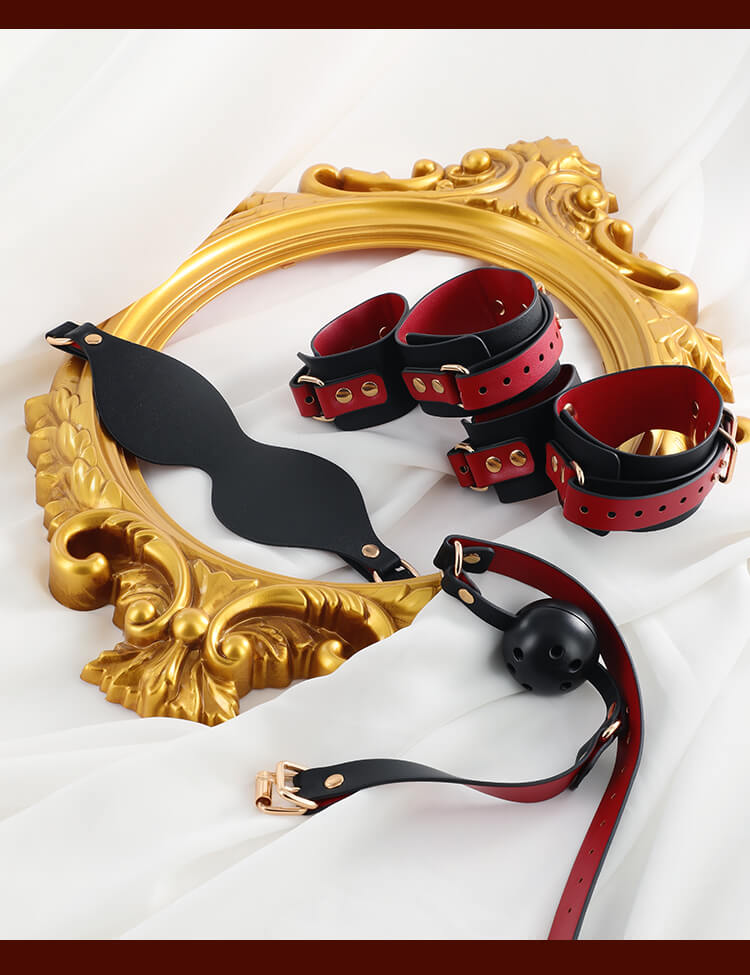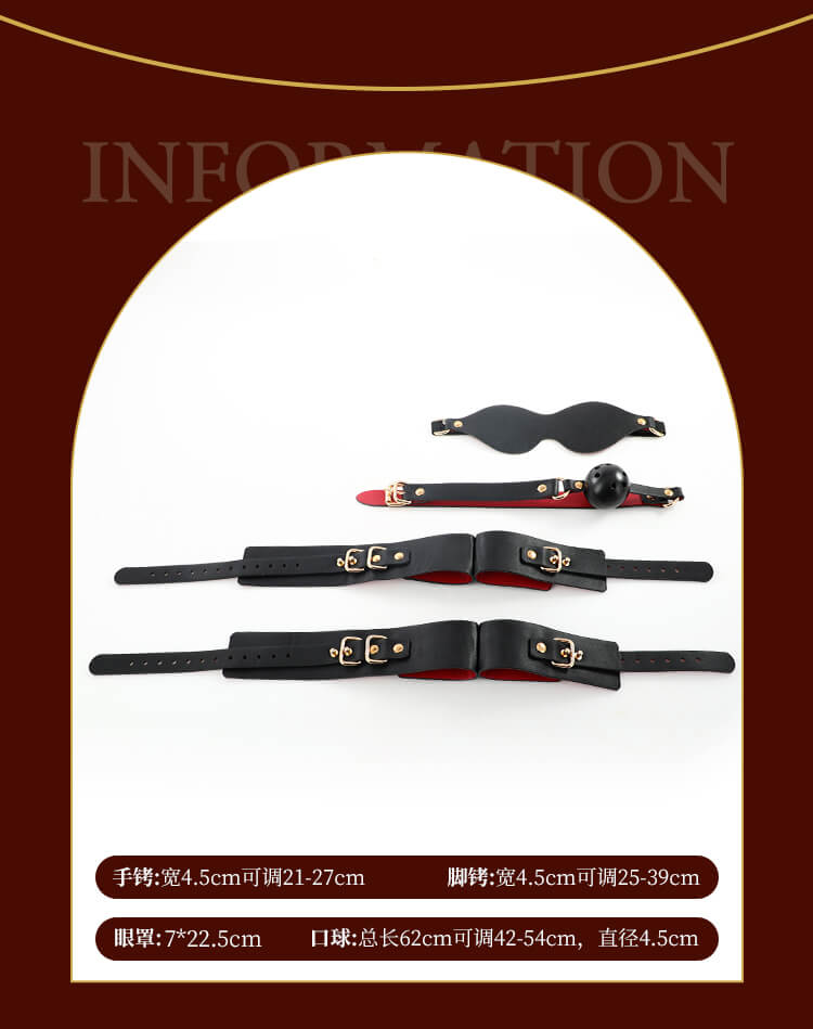 and your soul trembles under the control of pleasure. This complete set of erotic bondage gear invites couples who crave exploration to indulge in a full-sensory journey—from visual deprivation to physical restraint. The striking contrast of black and red radiates danger and irresistible temptation.Ball Gag – Silence the Moans,