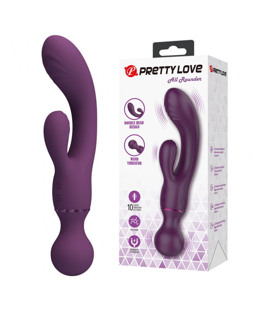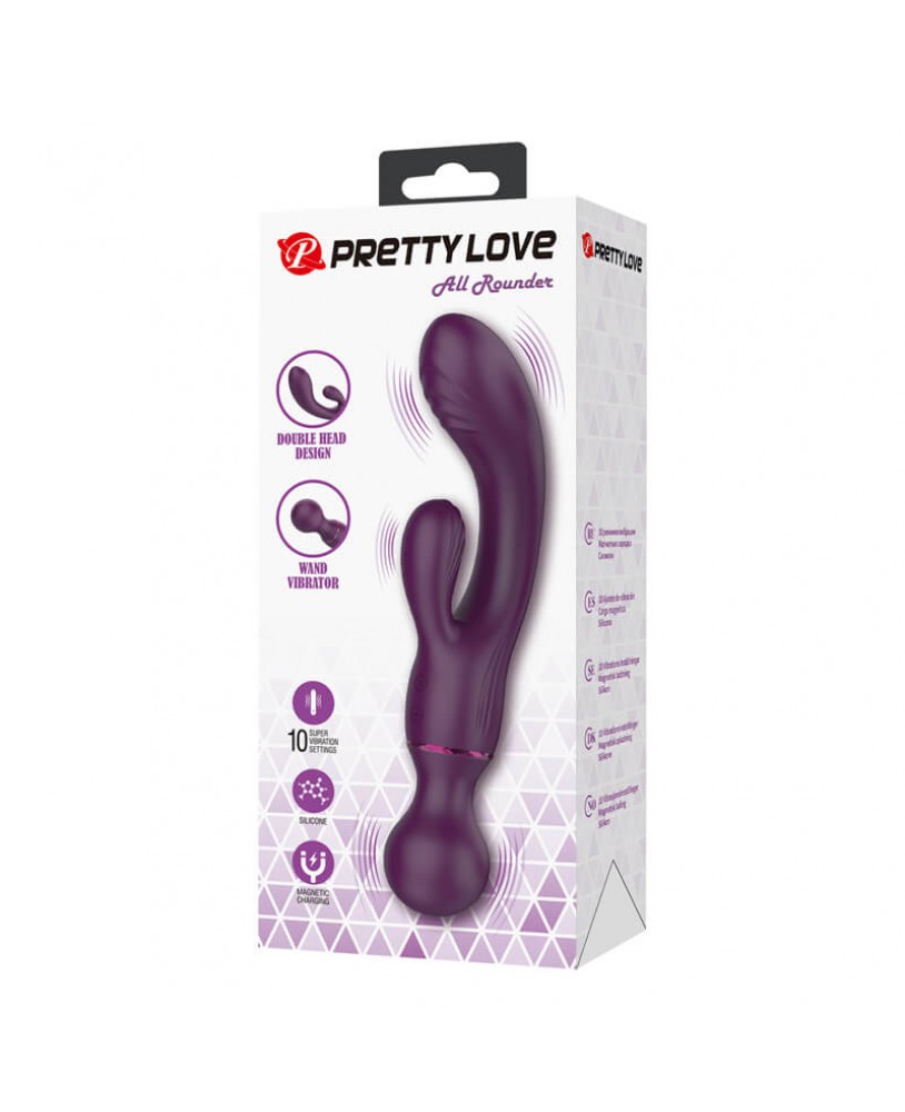 Pretty Love - All Roundet Double Head Vibrator Wand (Chargeable - Purple)