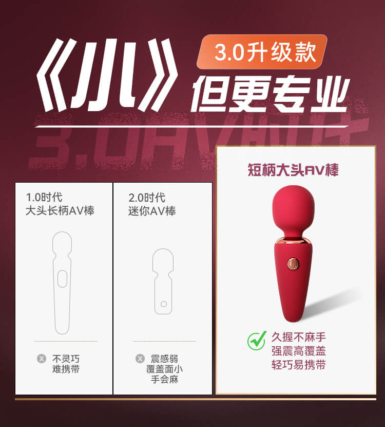 Small yet dangerous; cute yet cruel. The 3.0 upgraded short-handle big-head AV wand is like a beast hidden in the palm of your hand,
