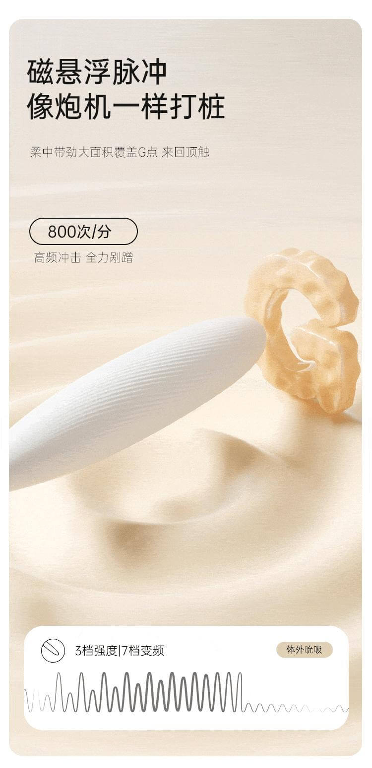 with a 3.1cm diameter that fills without overstretching. Its high-frequency pulsation—800 times per minute—reaches deep into the G-spot. Three intensity levels and seven high-frequency pulse modes combine perfectly,
