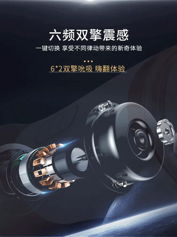 six frequencies—from shallow to deep—match your rhythm. The resonance of the motors surges within the tight canal,
