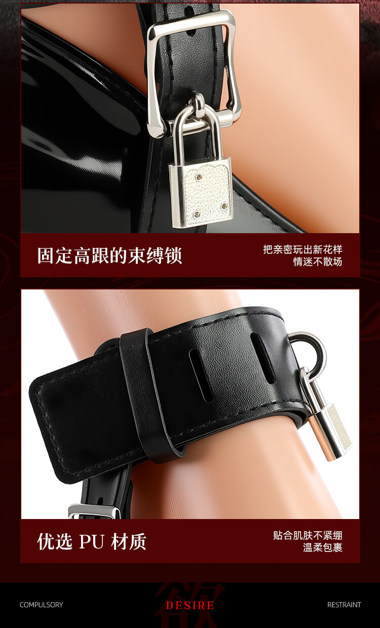 this subtle restraint ignites an even deeper craving.A unique binding design sets the mood ablaze.Restriction and temptation intertwine—each tightening of the strap echoes a racing heartbeat.High heels are no longer mere adornments; they become a declaration—your stage of dominance.Crafted from premium PU leather,
