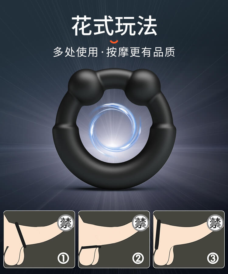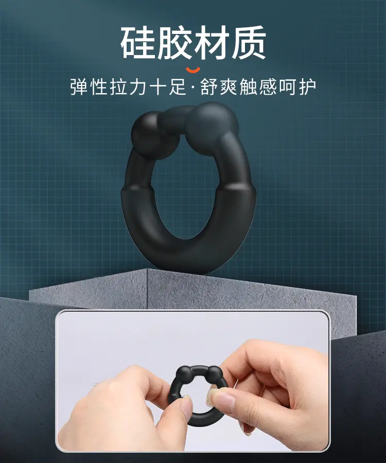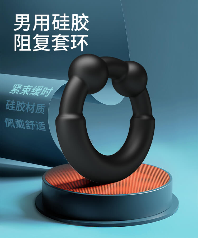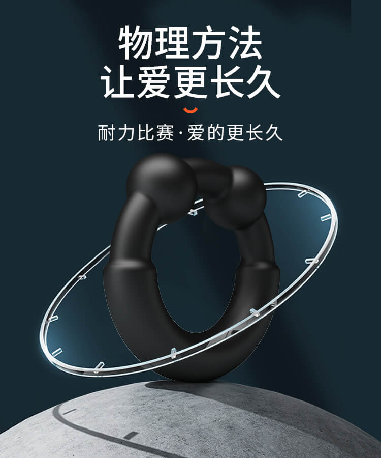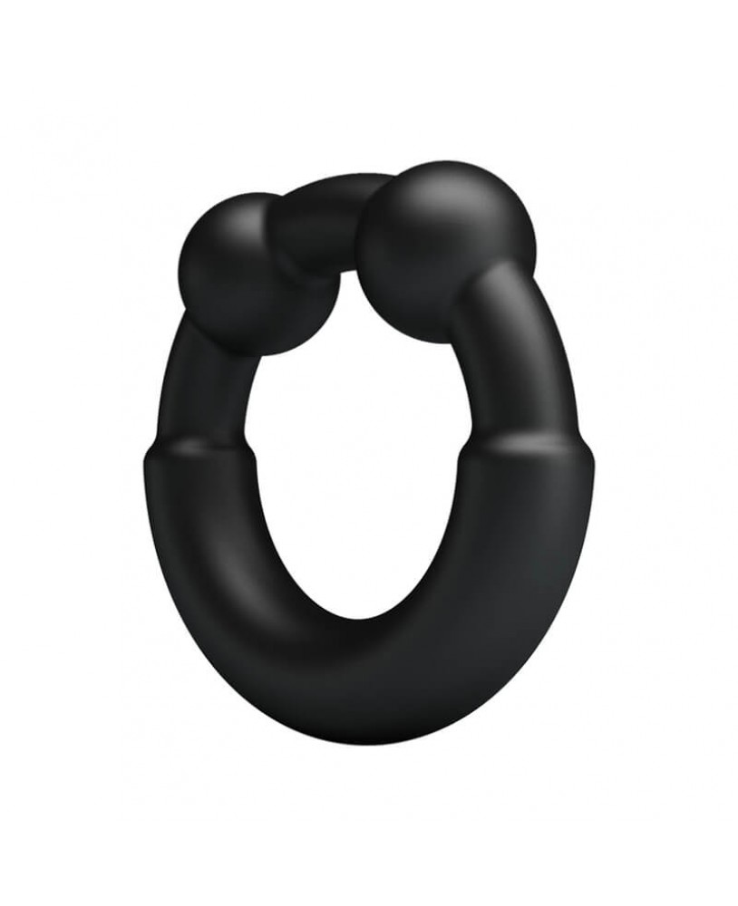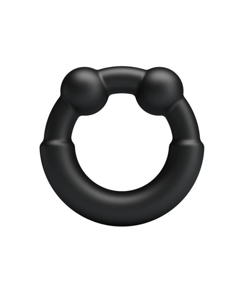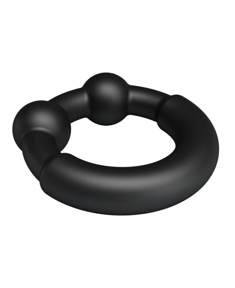 The double-sphere ring structure connects two slightly raised round ends into a closed oval shape—visually simple,